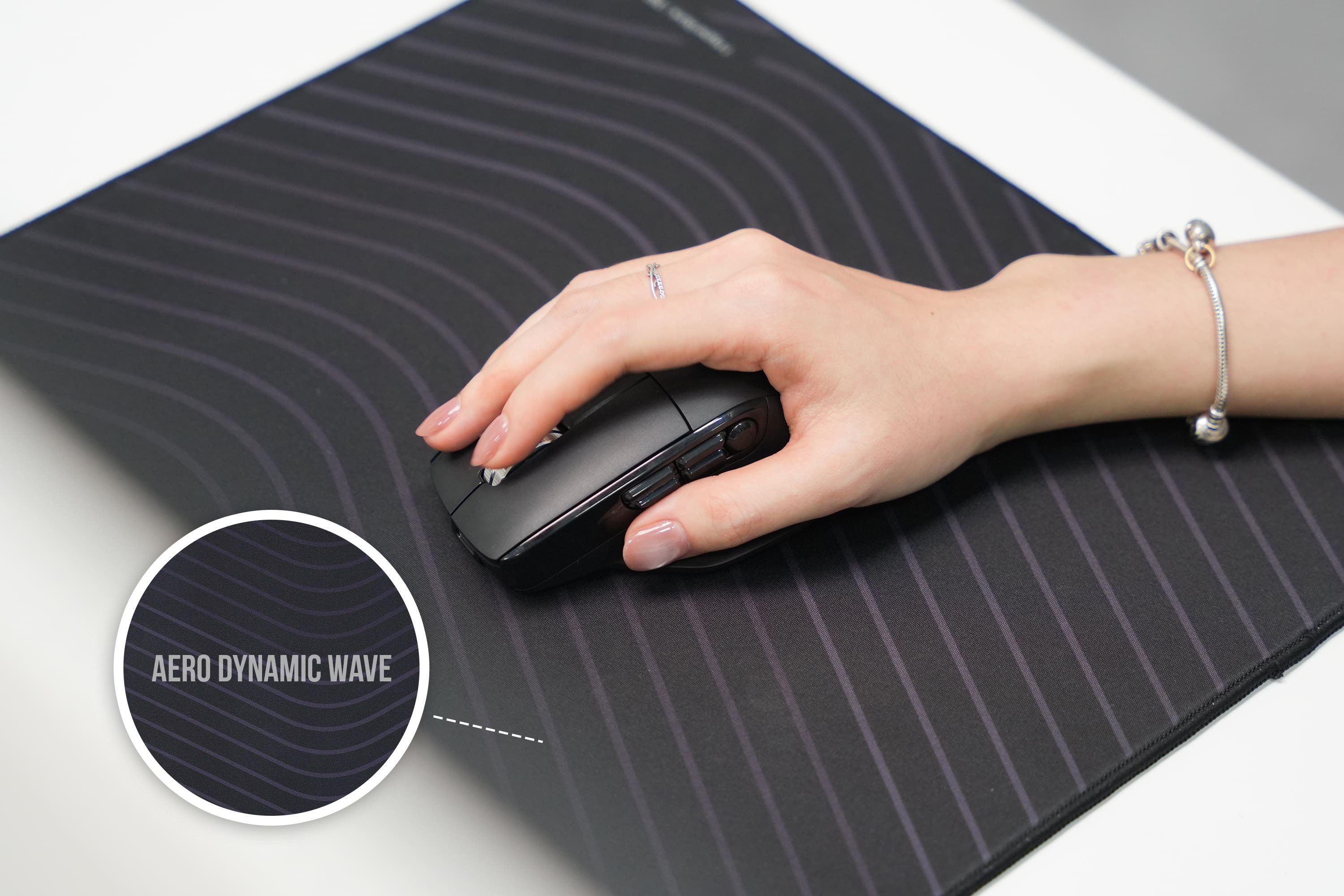 - Sử dụng họa tiết Aero Dynamic Wave tối giản, hiện đại như pad gaming Fable