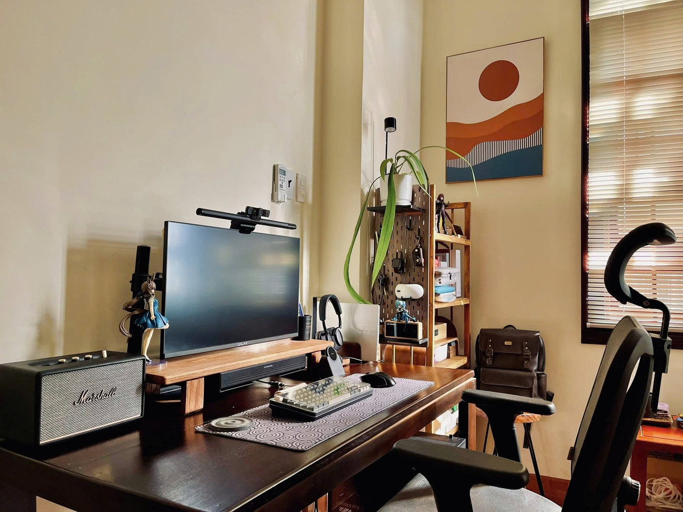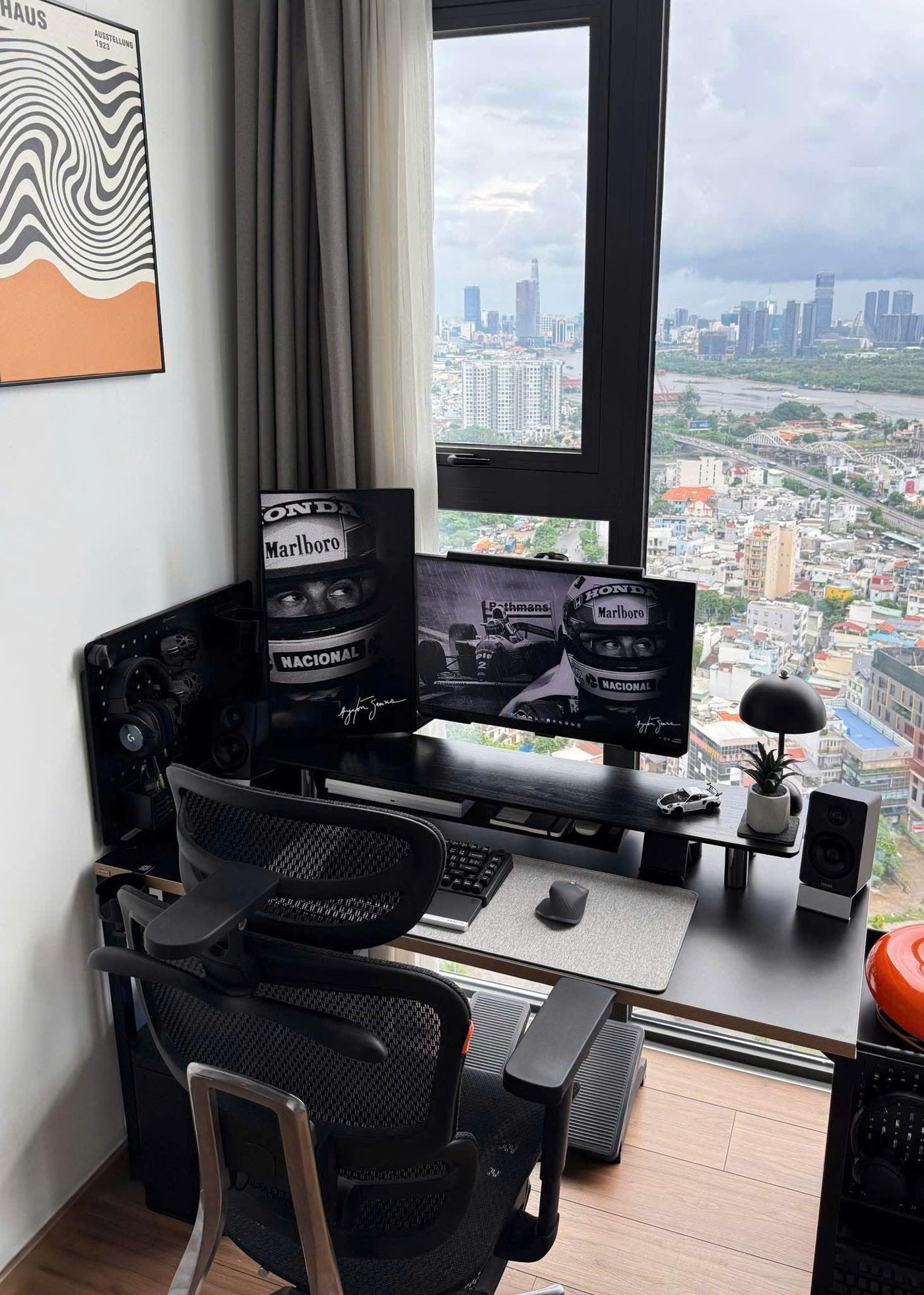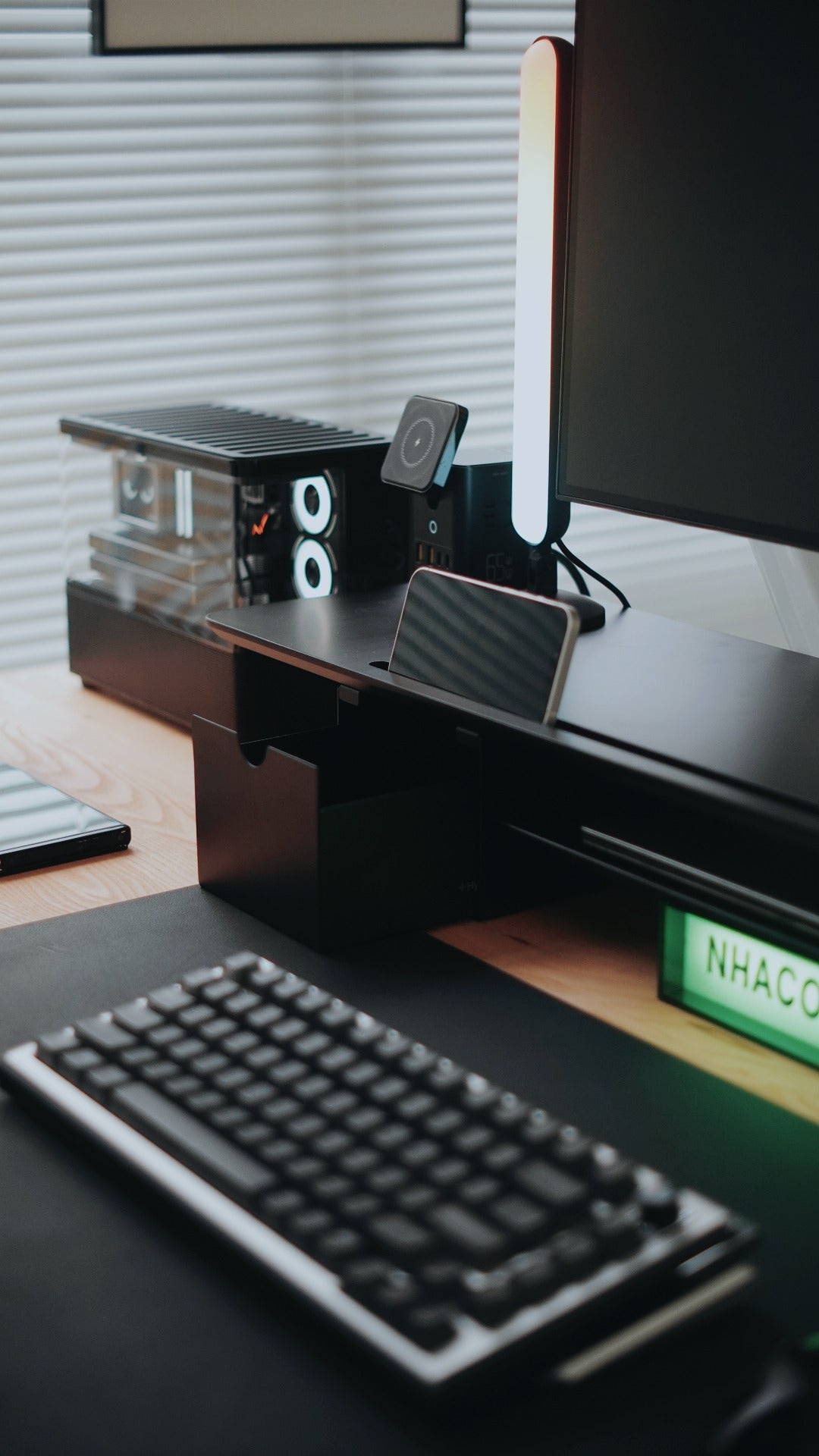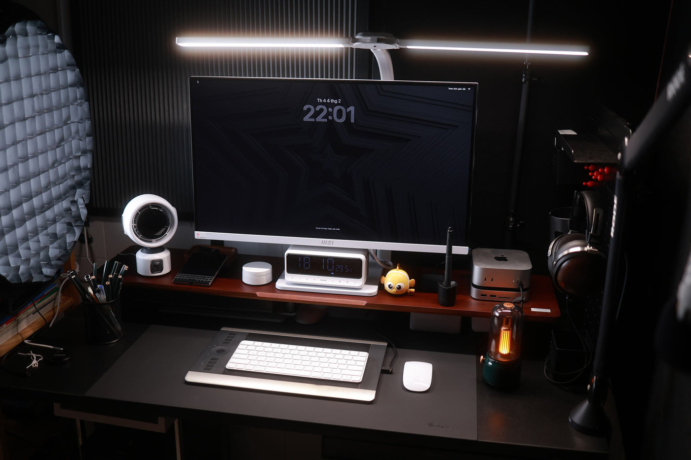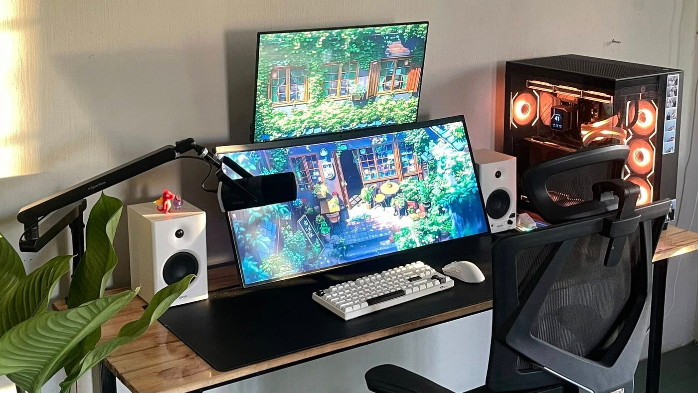 Cận cảnh sản phẩm kệ màn hình HPW DS02 trong setup thực tế của reviewer Nhacobenz cho anh em dễ zoom in nha!