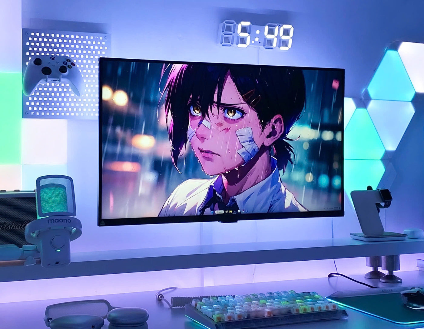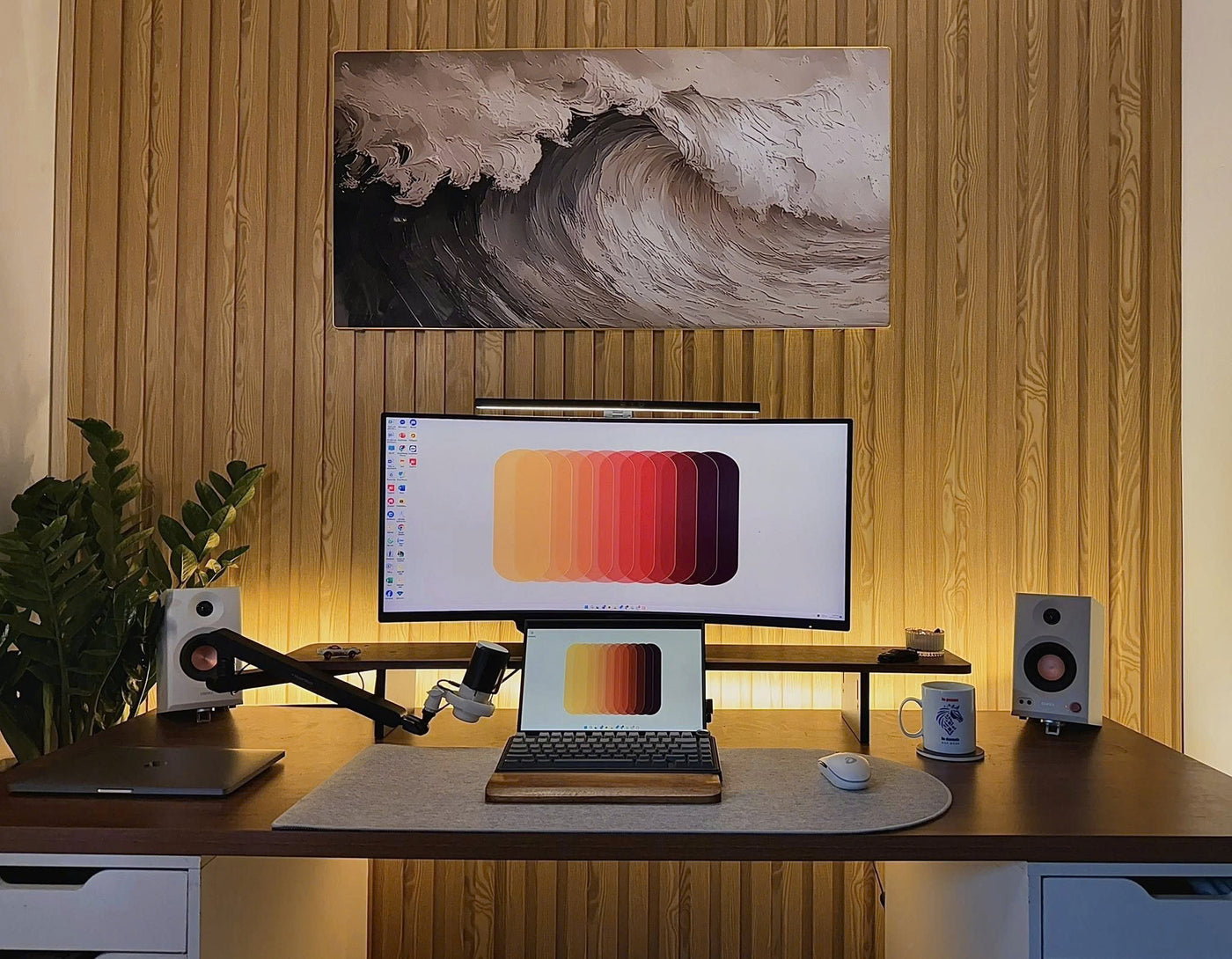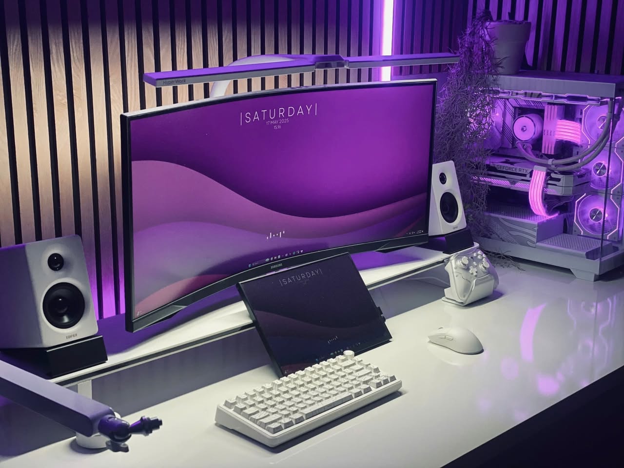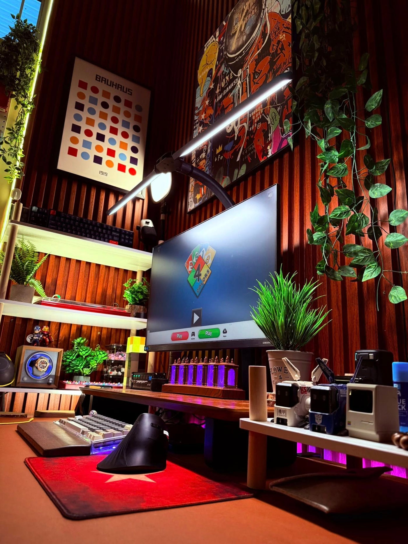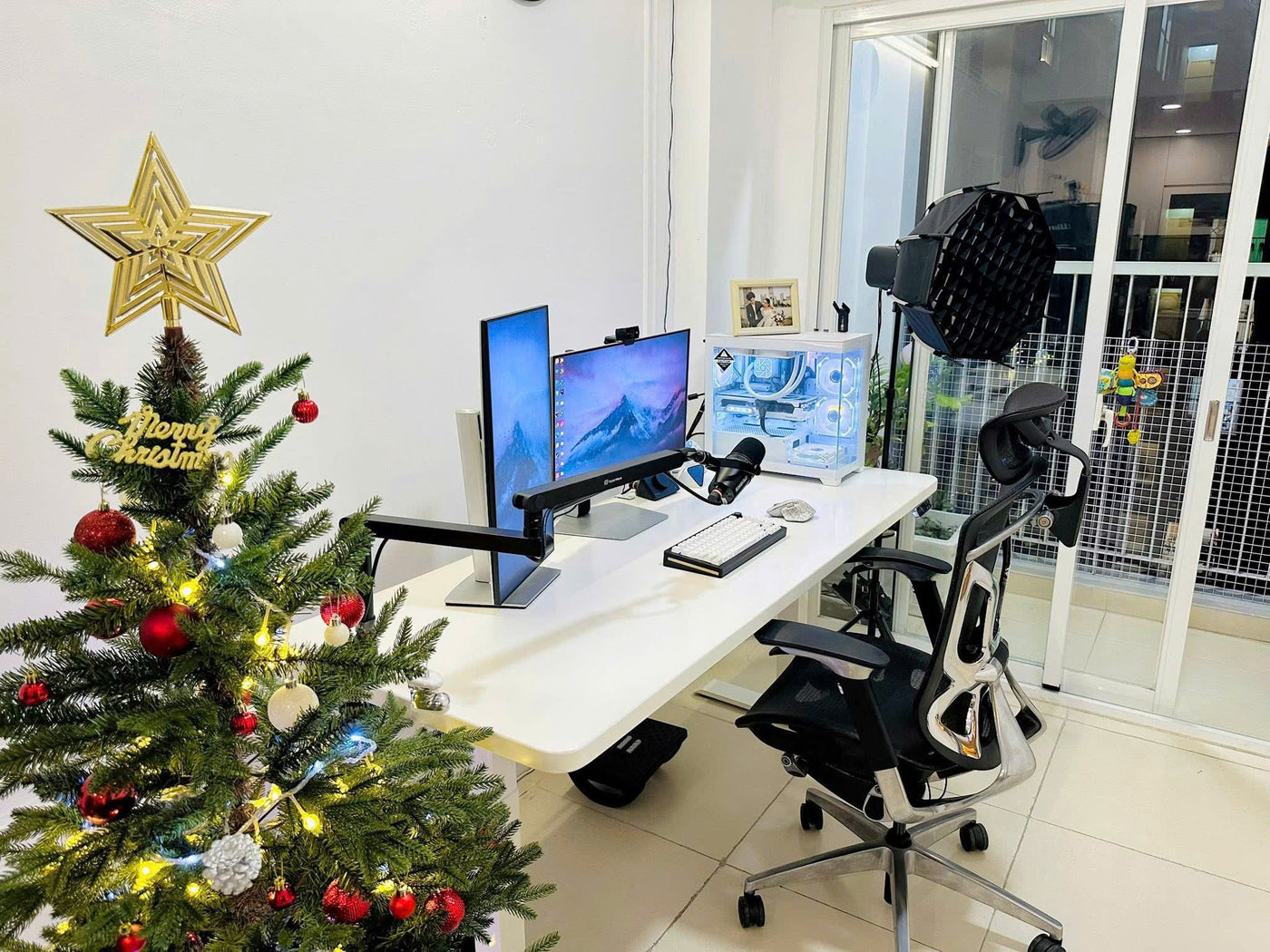 Cận cảnh sản phẩm kệ màn hình HPW DS02 trong setup thực tế của reviewer Nhacobenz cho anh em dễ zoom in nha!