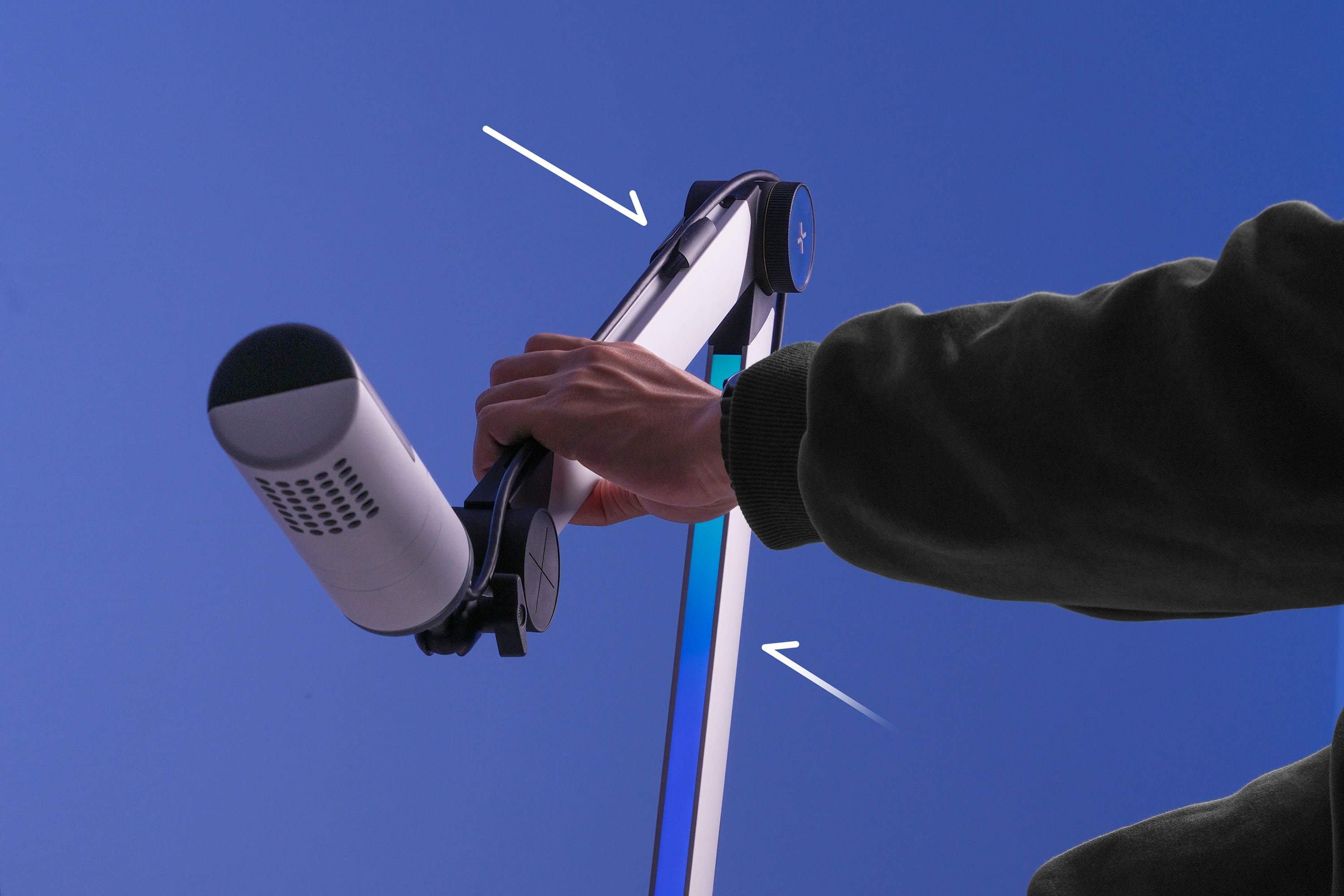 Cách bố trí này giúp dây được dẫn gọn gàng theo chuyển động của arm, hạn chế tình trạng rối, vướng tay hoặc ảnh hưởng đến phạm vi gập mở khi điều chỉnh vị trí microphone.