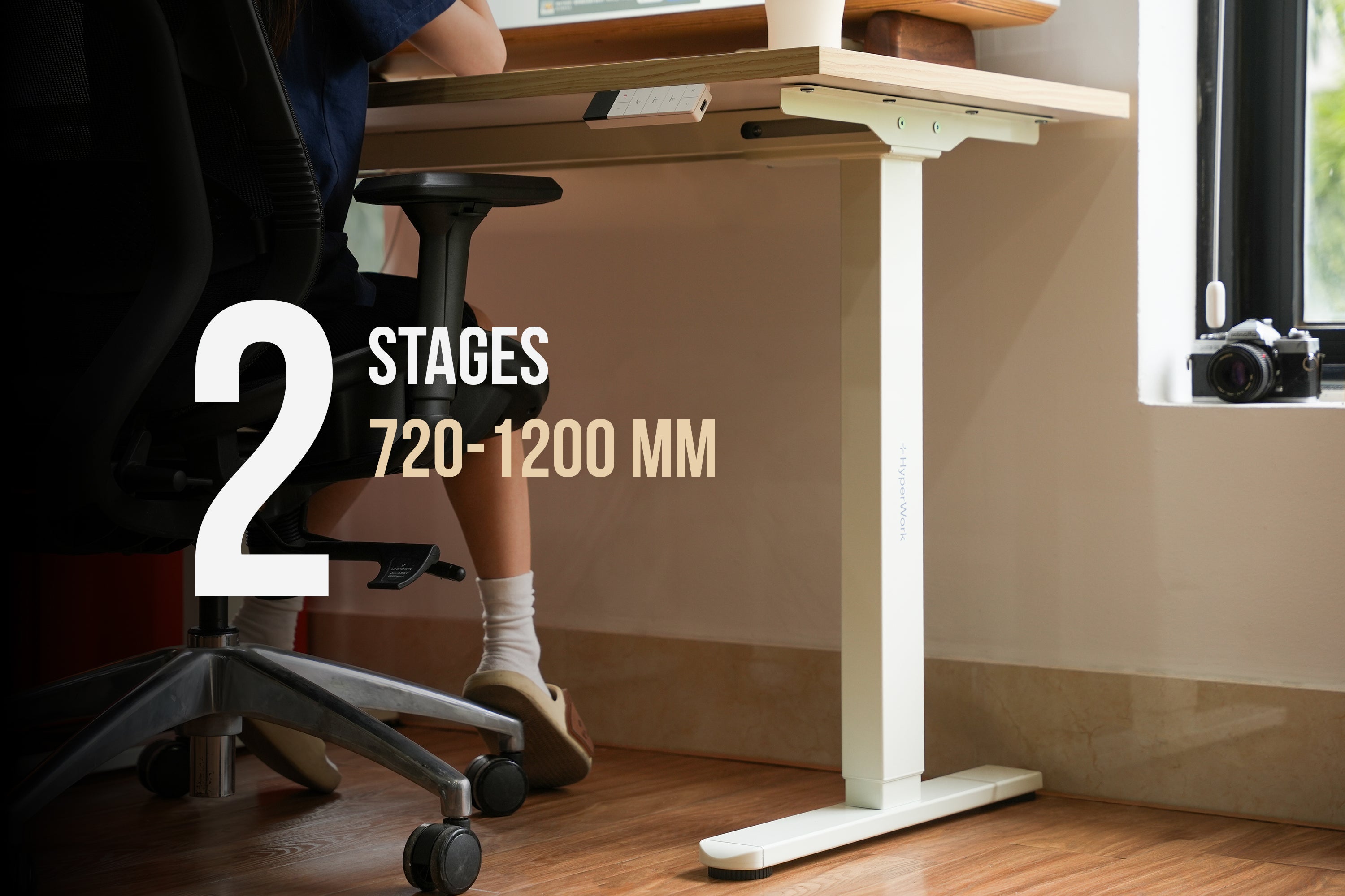 2 stages (khớp chân) hỗ trợ nâng hạ từ 720-1200 mm, phù hợp với người dùng có chiều cao trung bình có thể thay đổi tư thế đứng - ngồi linh hoạt.