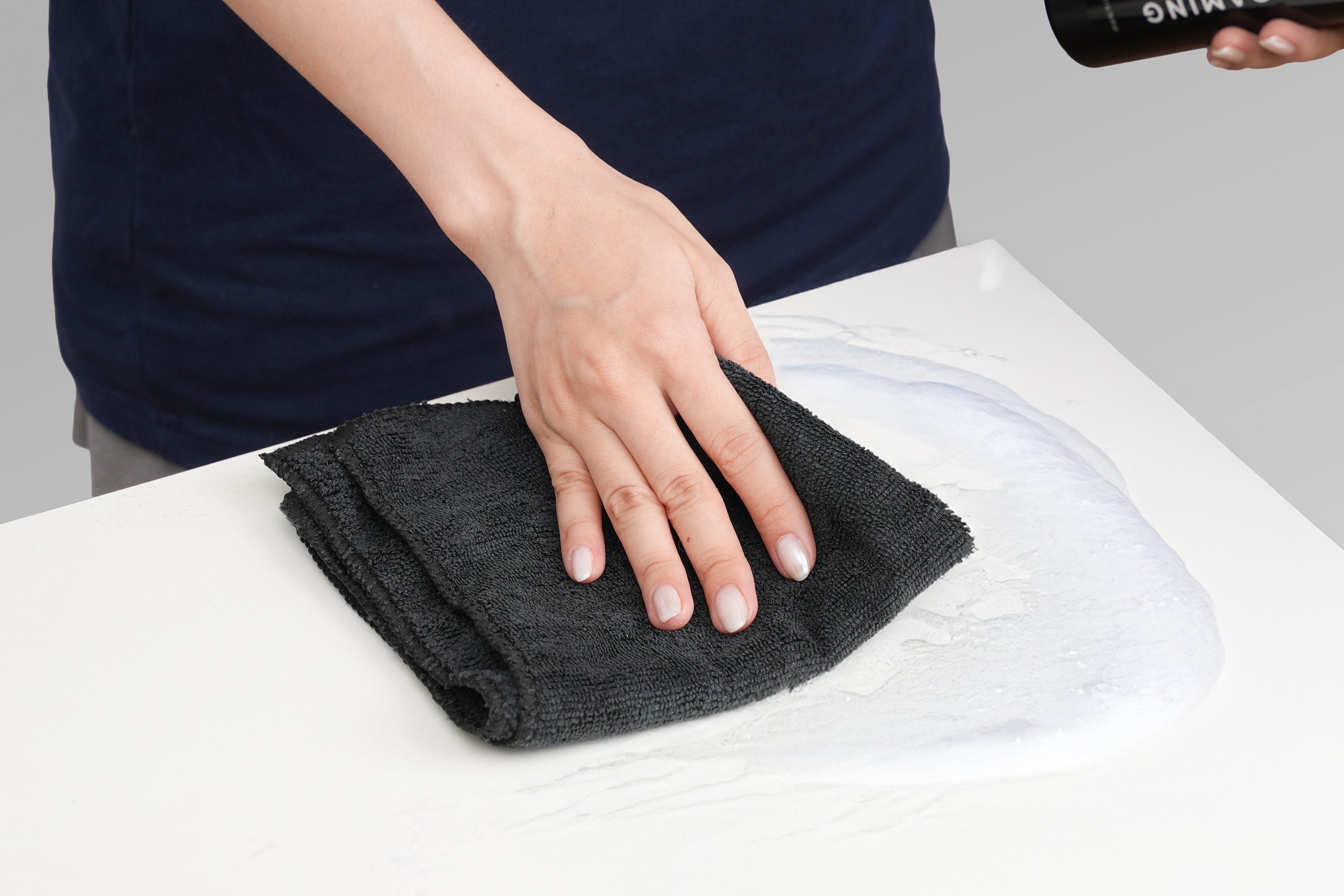- Khăn thấm hút tốt, lau sạch sau khi sử dụng Foaming Cleaner