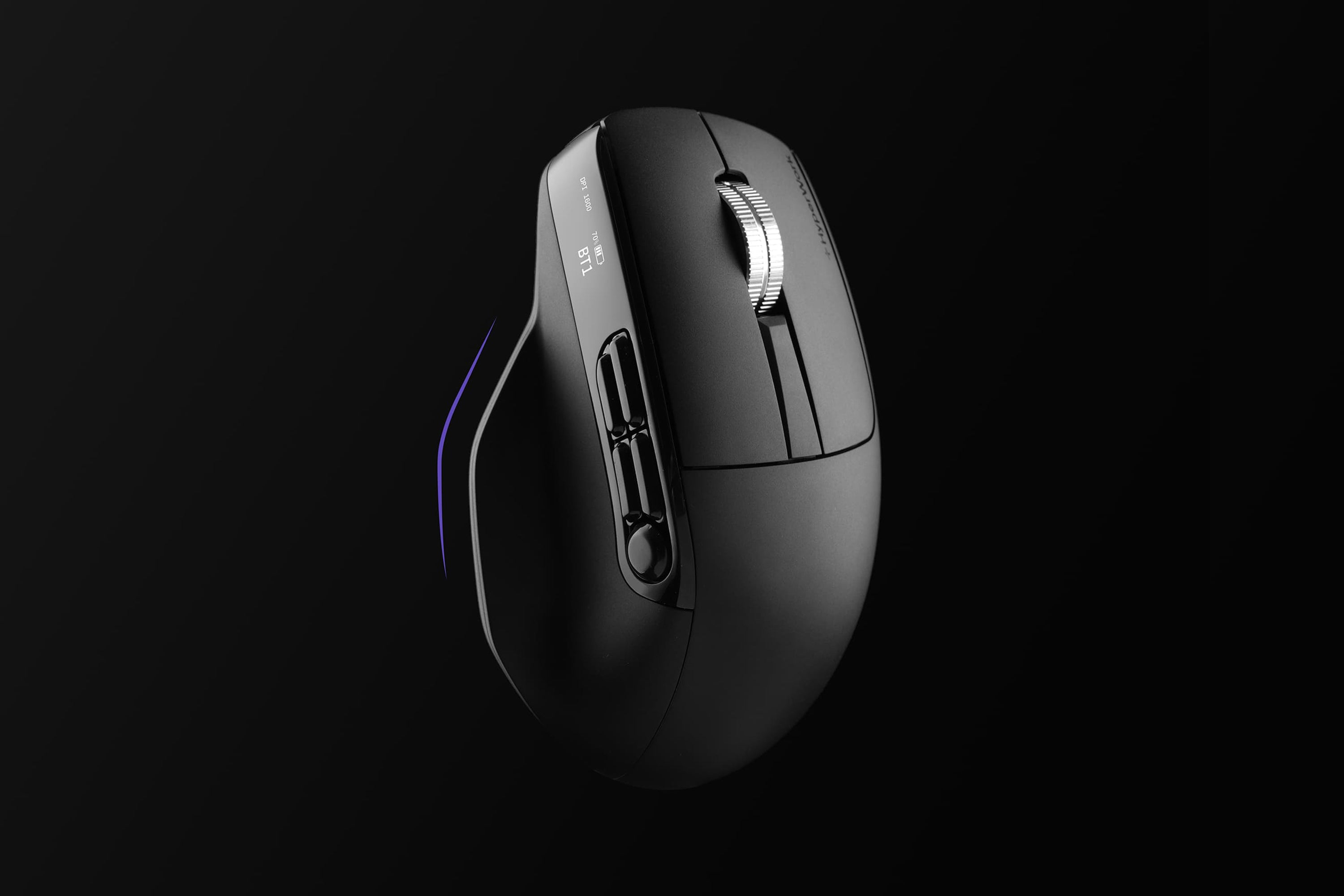 - Màn hình tích hợp trên thân, cung cấp phần trăm pin, DPI và thiết bị đang kết nối