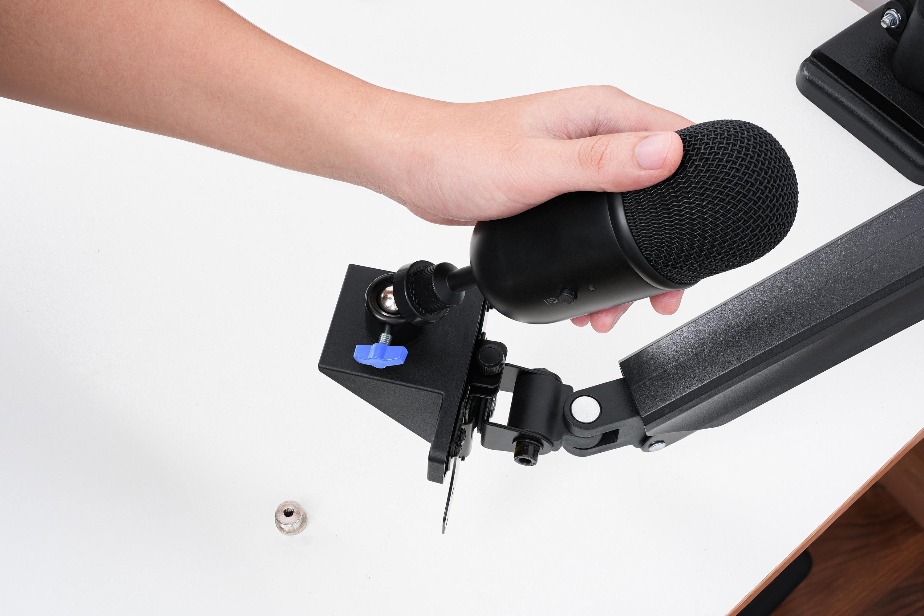 Phụ kiện bao gồm 1 ngàm chuyển đổi và 1 ballhead, hỗ trợ gắn các thiết bị như máy ảnh, microphone, đèn,... nhằm nâng đỡ cố định, dễ dàng điều chỉnh đa hướng, sử dụng cho nhiều mục đích quay chụp, thu âm, livestream,...