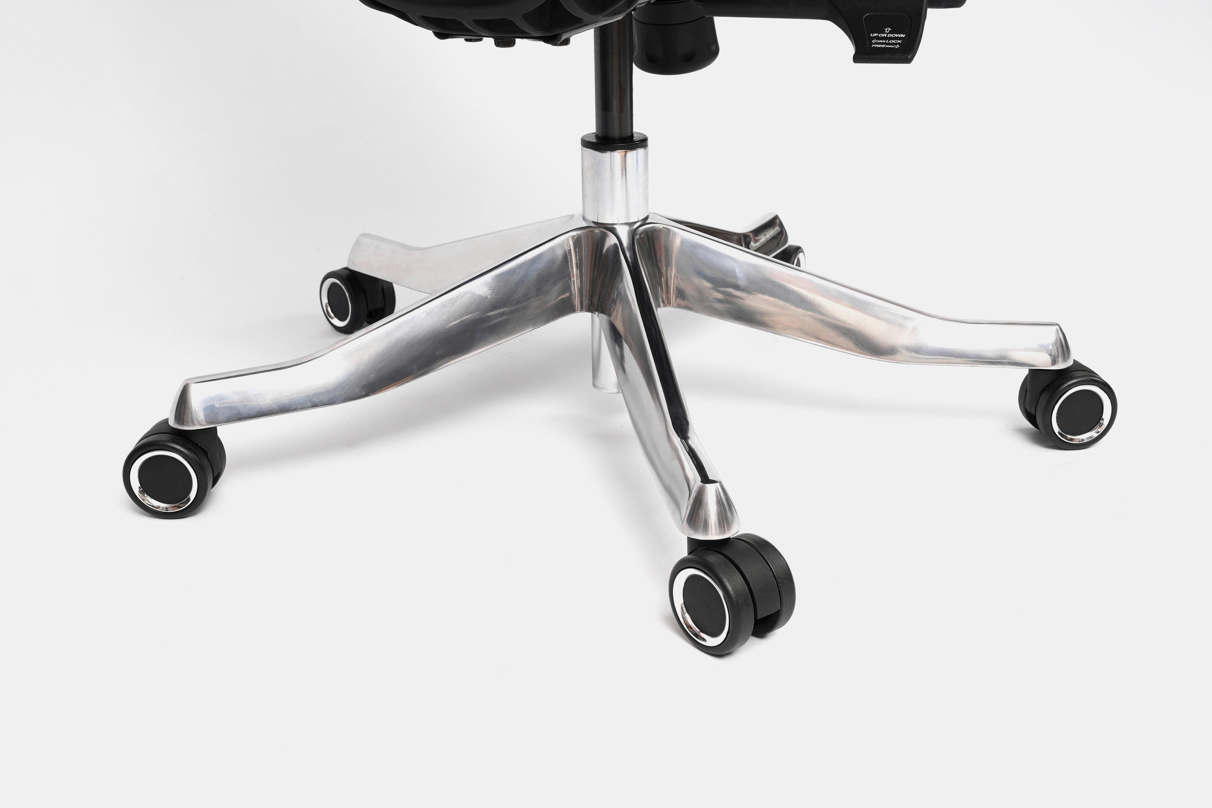 Airy Pro sở hữu hệ thống bánh xe thiết kế nhỏ gọn hơn, êm ái và chịu lực ổn định hơn. Chân ghế kim loại bền chắc, sáng bóng thẩm mỹ.