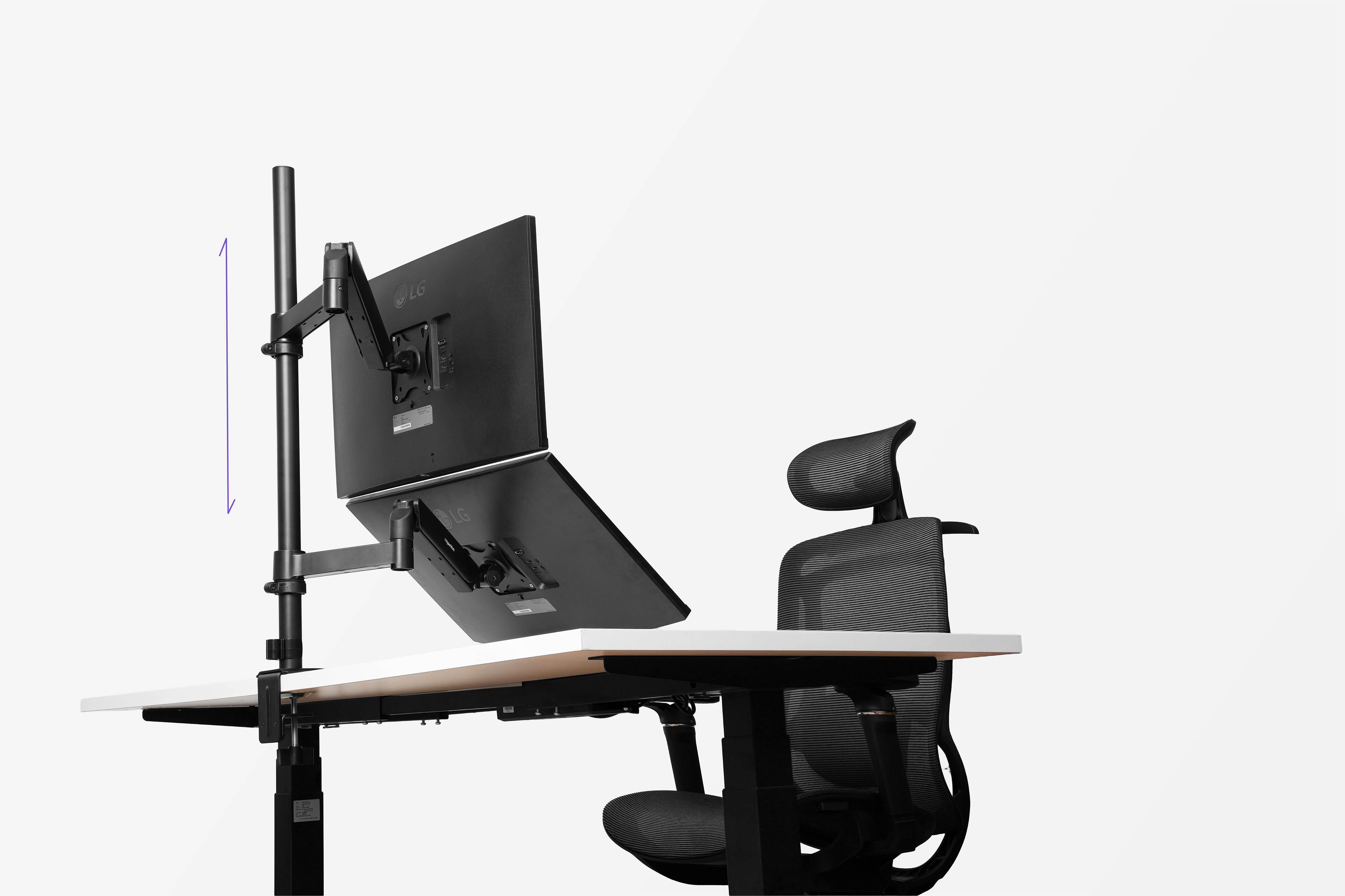 P1 Dual sử dụng cột mặc định 40 cm với 2 tay đòn được cố định bằng chốt. Khi cần nâng hạ tay đòn, người dùng thao tác nới và siết chốt dễ dàng. Tay đòn vươn cao tối đa 68 cm khi sử dụng cột 40 cm kể từ mặt bàn.