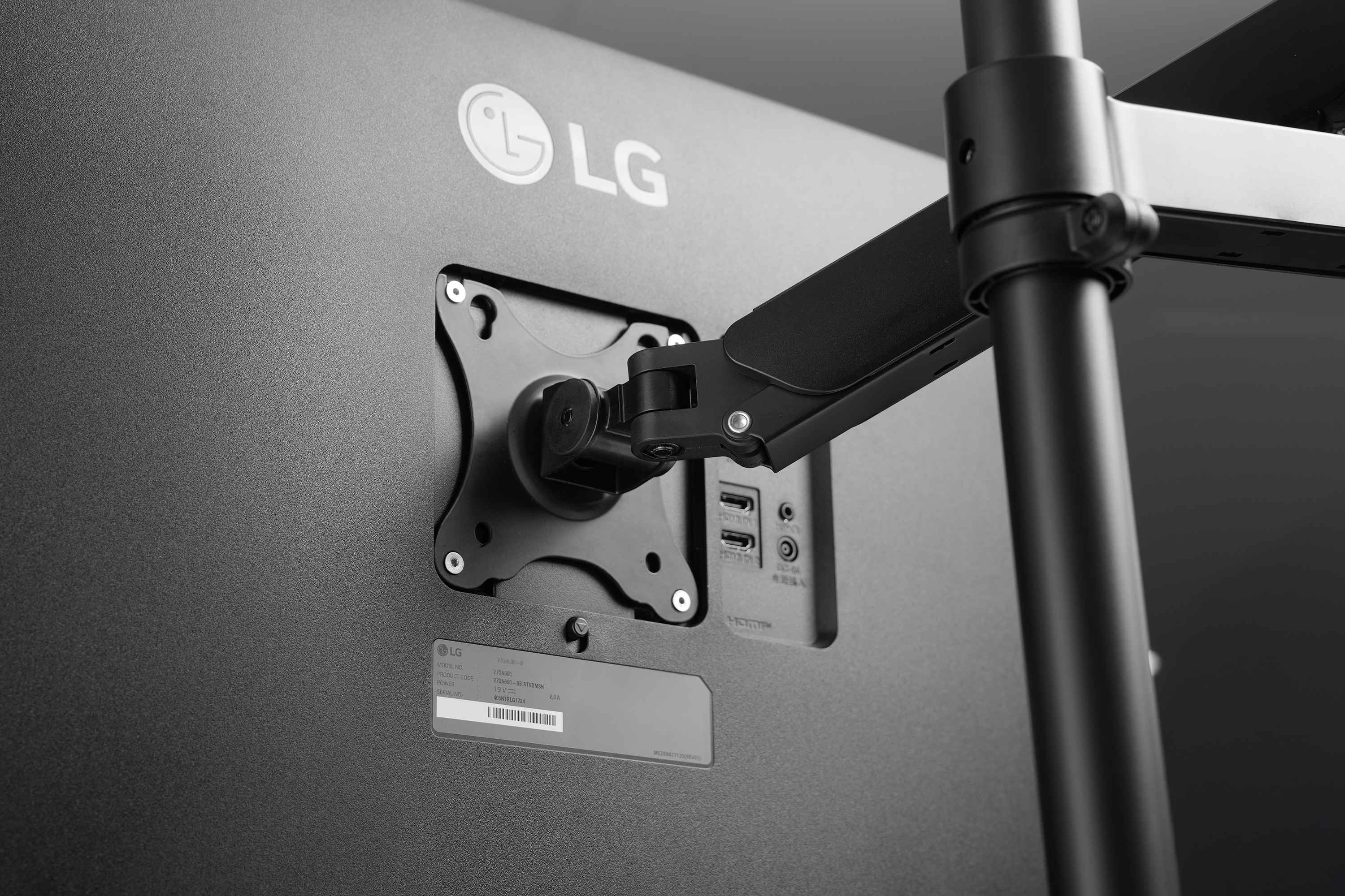 - Ngàm VESA cố định, tăng độ chắc chắn, giảm rung lắc đáng kể khi sử dụng cho 2 màn trở lên