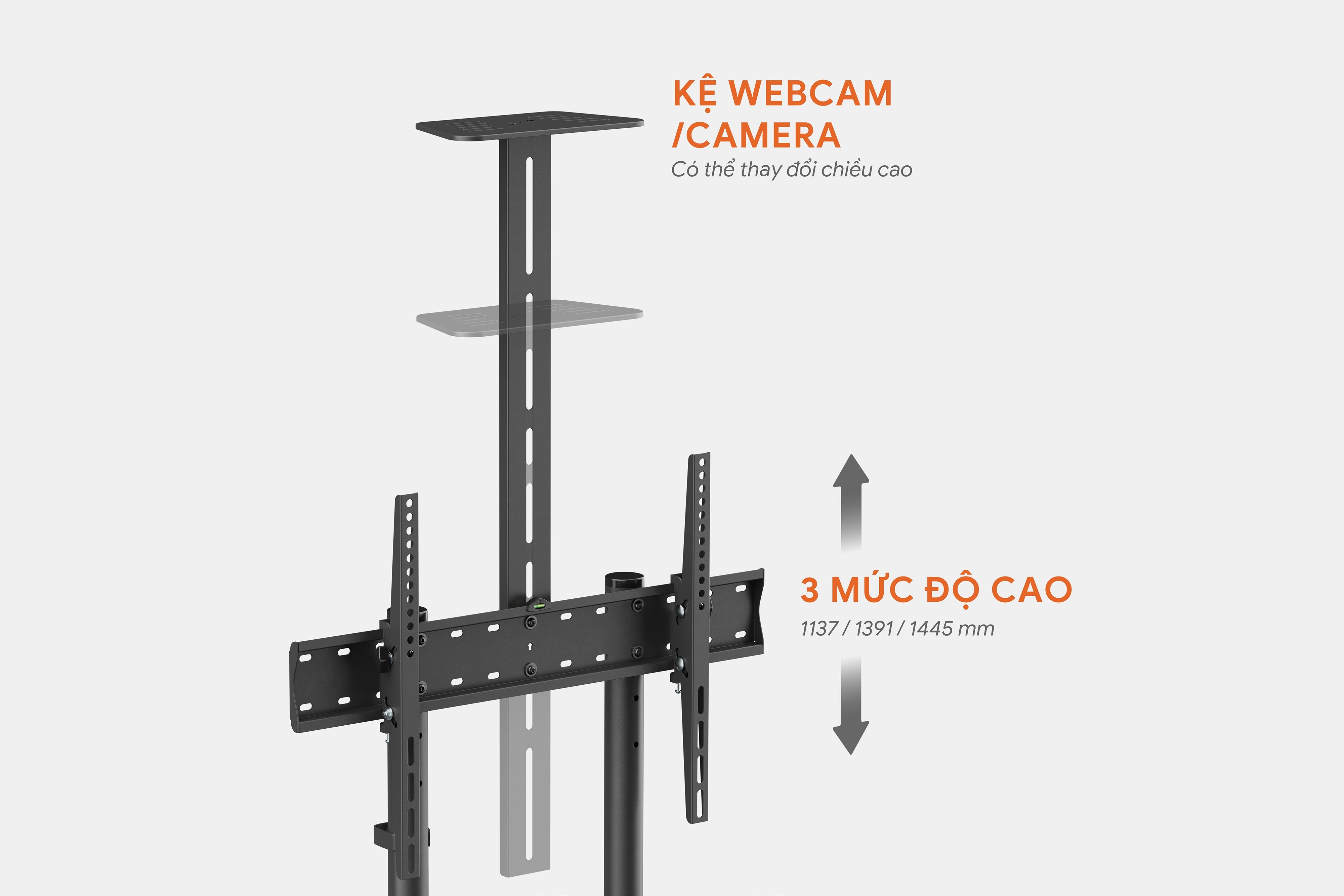 Người thuyết trình muốn nghiêng màn TV ở vị trí thuận lợi để tránh nắng chói hoặc nâng hạ để tạo góc nhìn thuận tiện theo dõi hơn với phạm vi nâng hạ (3 mức): 1137, 1391 và 1445 mm