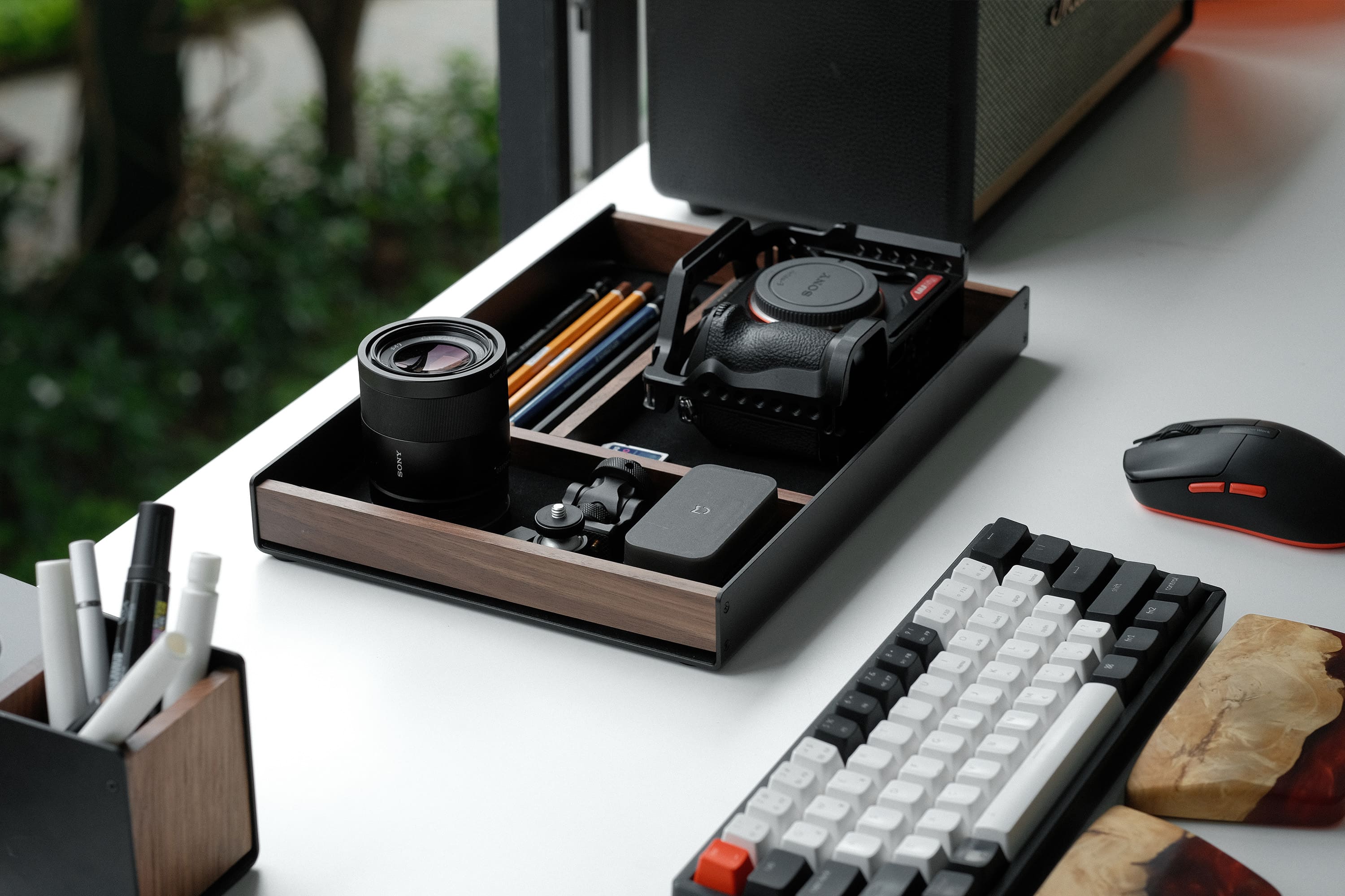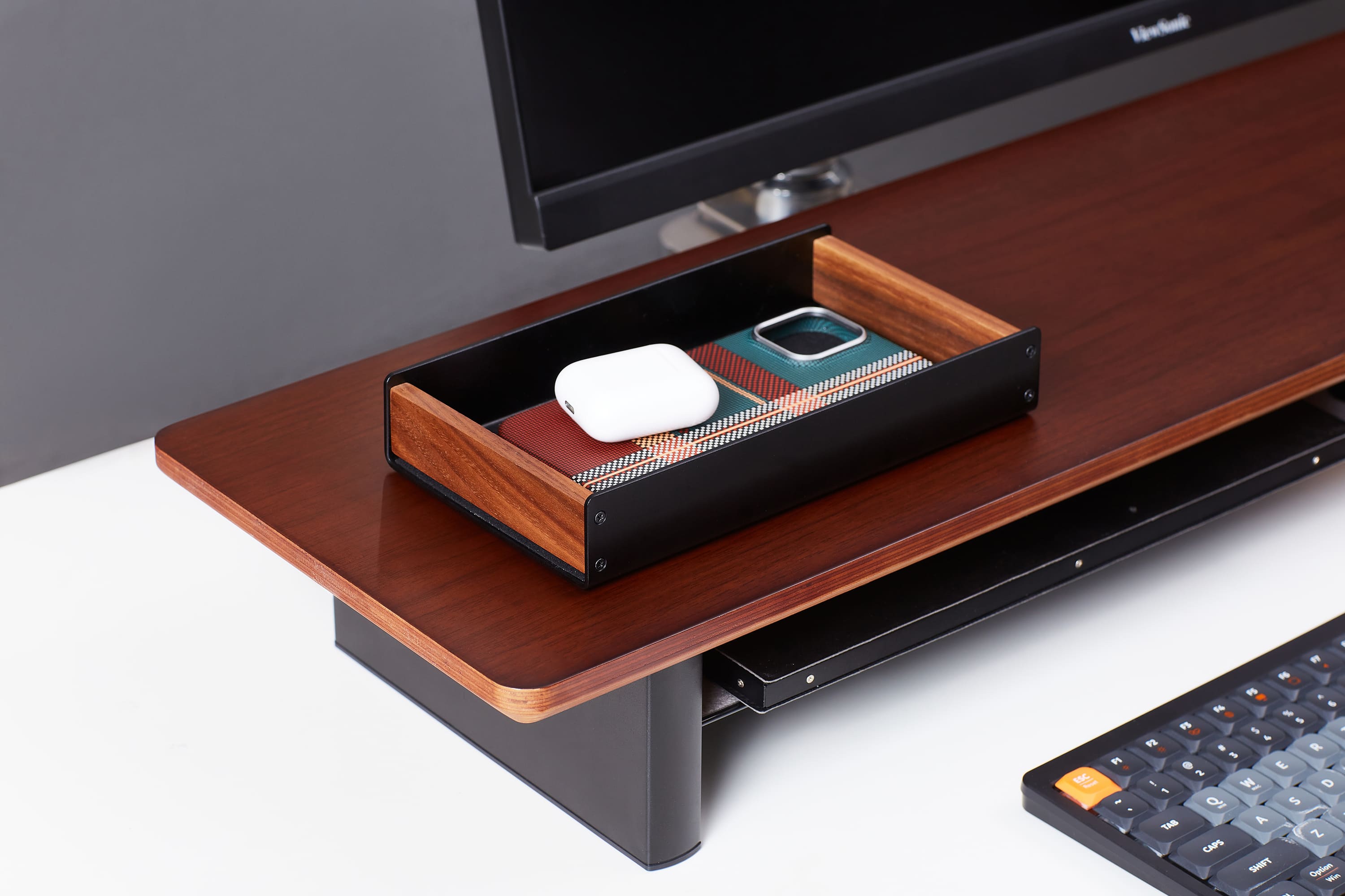 Khay AT01 làm đẹp góc setup với chất liệu gỗ óc chó cao cấp, đặc biệt với các setup gỗ mang lại cảm giác chuyên nghiệp, sang trọng. Các chi tiết thành khay gia công từ nhôm cắt CNC tỉ mỉ, chính xác, giúp sản phẩm đạt đến độ tinh xảo.