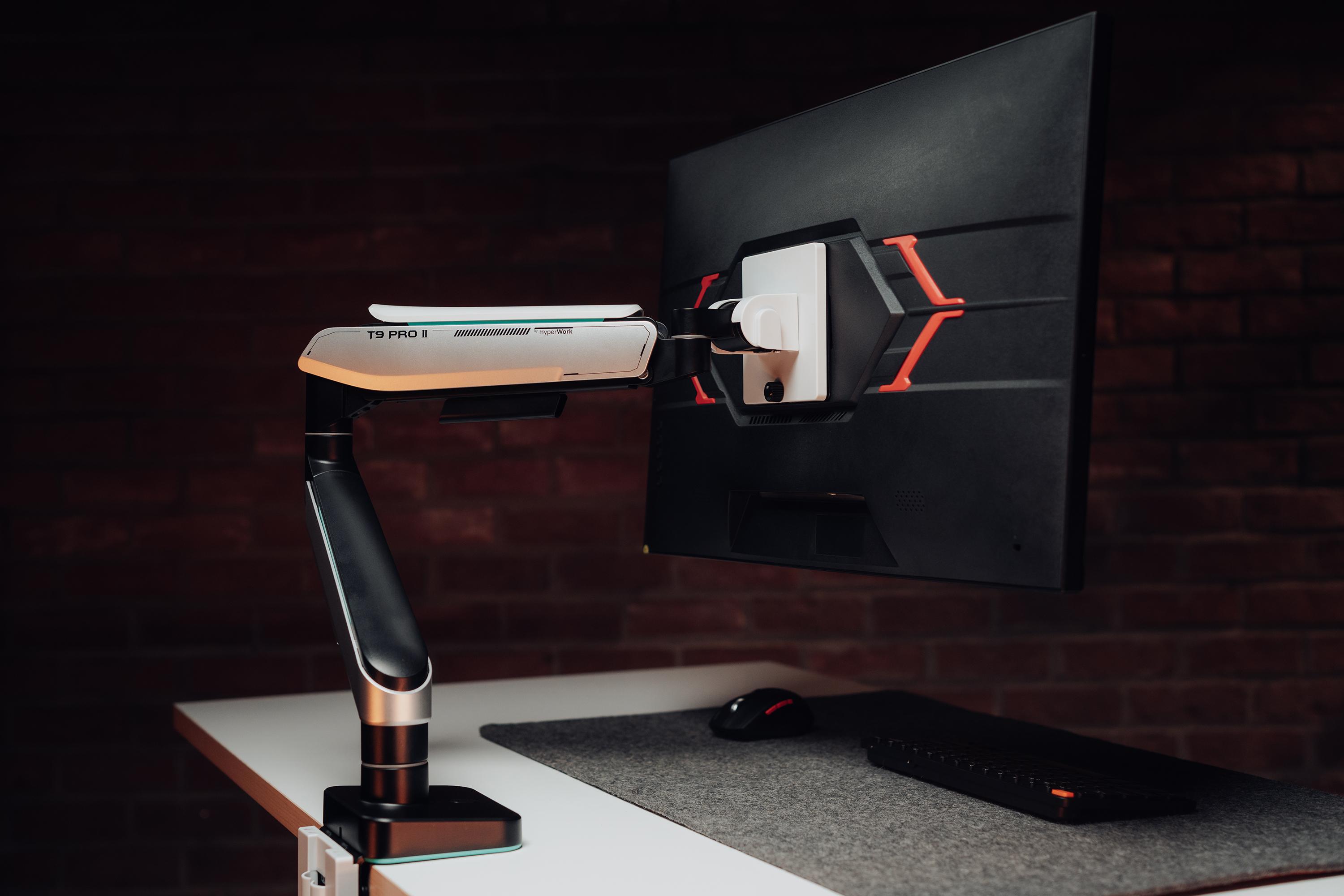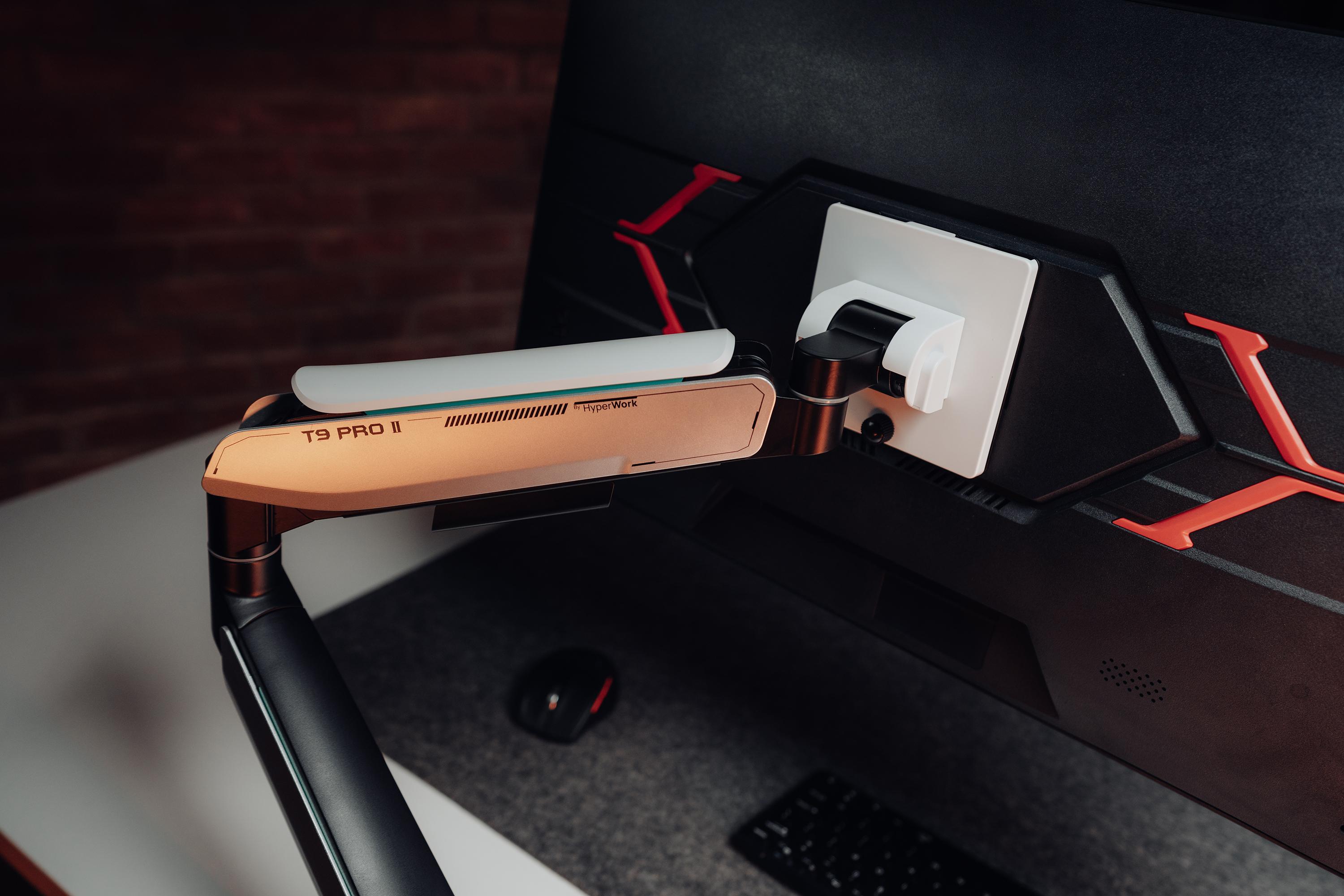 Uy lực như một chiến binh tới từ tương lai, T9 Pro II không chỉ tạo ra cú nổ lớn trong làng arm màn hình nhờ thông số khủng, hiệu suất lớn (tải 18 kg, nâng màn tới 43 inch) mà còn chinh phục những tín đồ sành setup với ngoại hình "quái vật" đầy hiện đại, hoàn thiện và tinh chỉnh chính xác, hoàn mỹ.